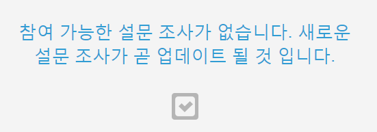 해당하는 설문조사가 없는 경우, "참여 가능한 설문조사가 없습니다."라는 문구의 화면이 나옵니다.