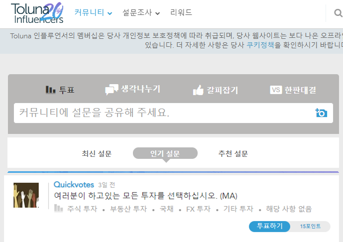 얼마 안되지만 아주 가끔 심심할 때 투표에 참여하곤 합니다.