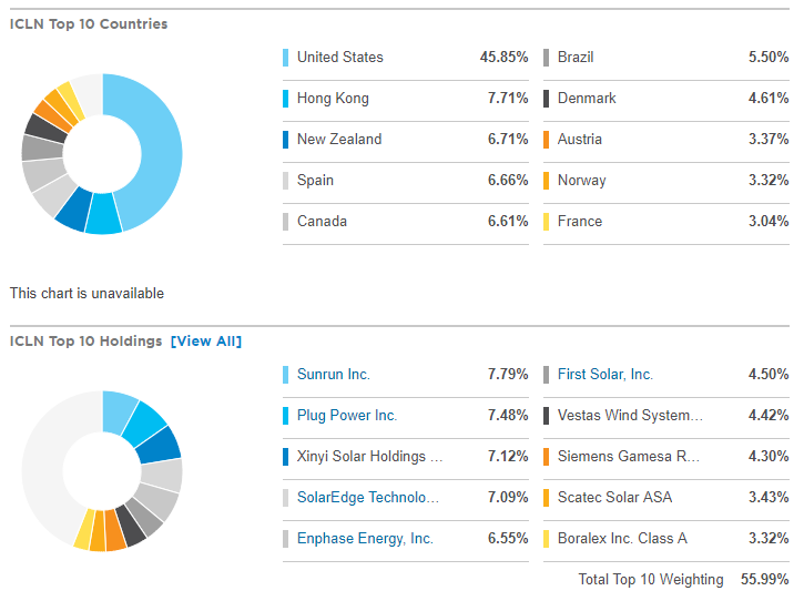 친환경 ETF QCLN(0.60%), FAN(0.62%), TAN(0.71%)에 비하면, ICLN의 0.46% 보수는 그리 높은 편은 아닙니다.
