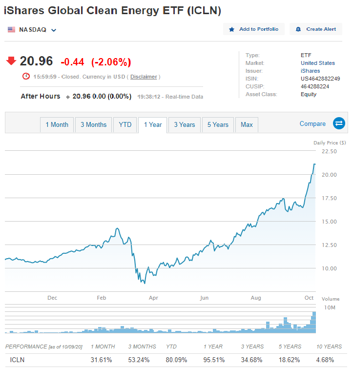 바이든이 승기를 잡을 것 같다는 생각에 바이든 관련 주를 찾아보다가 ICLN를 발견하였는데, 크게 생각하지 않고 매수하여 이에 대해 알아보려 합니다. 아닌 것 같으면 주가가 빠지기 전에 매도하려고요.