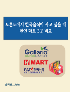 지난 캐나다 마트(링크)에 이어 토론토에 있는 한인 마트 3곳에 대한 리뷰입니다.