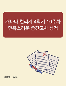 | 캐나다 컬리지 4학기 8주차: 벌써 절반이 지났다. (1) | 2023.07.10 |
