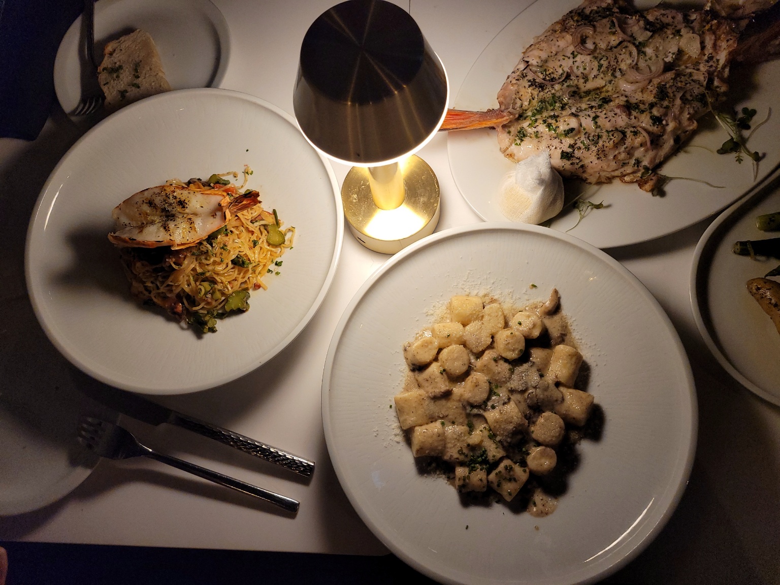 저희는 금요일 저녁에 예약을 하고 갔는데 사람이 정말 많았습니다. 전반적으로 서비스도 좋고 음식도 최근에 먹었던 곳 중 최고 맛있었습니다. 구글 사진에 피자가 있었는데 메뉴에는 없어서 물어보니 얼마 전에 없앴다고 합니다. 저희는 오늘의 스페셜(Today's Special)의 음식 Red Snapper (적색퉁돔 생선), 해물 파스타 (이름이 기억이 나지 않네요), 그리고 일반 메뉴에서 Gundi Ai Funghi (트러플 버섯 뇨끼), 디저트로 Budino (식빵 푸딩 + 아이스크림)까지 먹었습니다. 특히 오늘의 스페셜이었던 해물파스타랑 생선요리가 맛있었네요. 가격은 파스타가 $27~31로 착하지 않습니다.