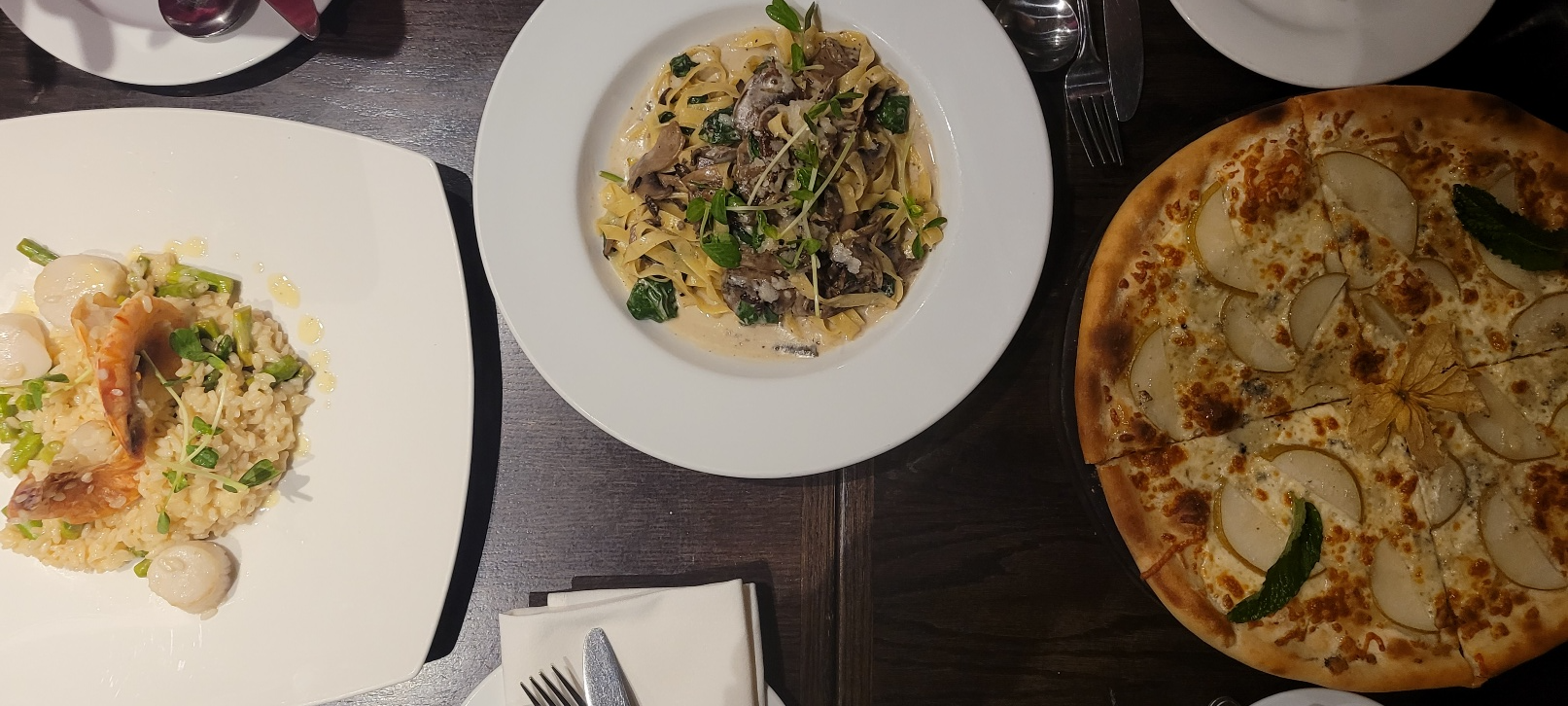 라 베치아는 친구의 추천으로 가게 되었고 다운타운에도 지점이 있는데 저는 미드타운 지점만 가봤습니다. 총 2번 방문했는데 처음에는 예약을 하고 갔고 두 번째는 예약 없이 워크인(walk-in) 했습니다. 1층에 항상 사람이 많아서 자리가 없으면 어쩌지 했는데 지하에 공간이 꽤 넓어서 워크인일 때도 바로 들어갔습니다. 메뉴는 피자랑 파스타 위주로 먹었는데, 피자는 Pera(고르곤졸라 치즈, 배, 꿀 피자), Prosciutto e Funghi(햄, 버섯 피자), 파스타는 Penne All'arrabiatta(토마토 아라비아따), Tagliatelle ai Funghi(버섯 크림 파스타)와 Risotto ai Gamberi (해물 리소또)도 먹어봤습니다. Pera피자가 유명하다고 하던데 역시 맛있었고, 버섯 크림 파스타도 참 맛있었습니다. 버섯 크림 파스타는 맛있어서 2번째 방문 때 또 주문했습니다. 텍스까지 해서 1인당 $40 정도 나왔습니다.