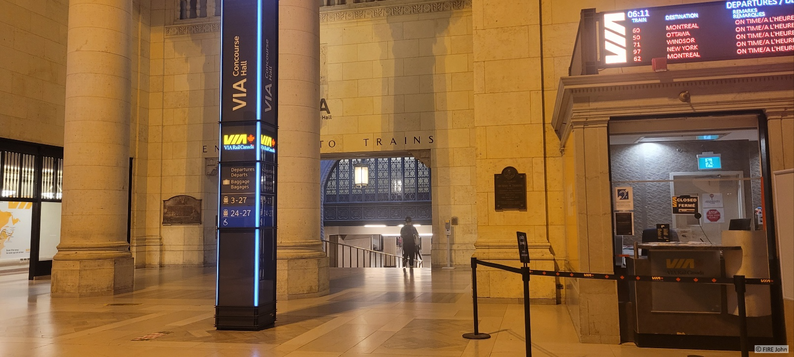 유니온 역에 도착해서 기차를 타러 갔습니다. 이곳저곳 "VIA" 표시가 되어 있어서 어렵지 않게 찾아갈 수 있습니다. 사진 오른쪽에 보이는 전광판에 적혀있는 자신의 열차 플랫폼 번호를 확인하고 플랫폼으로 가서 기다리고 있으면 됩니다. 출발 30분 전쯤 사람들이 줄을 서기 시작하면 눈치껏 줄을 서면 됩니다. 직원이 오셔서 QR코드를 찍으면서 탑승 확인을 하십니다. 열차가 출발하고 나서도 한 번 더 티켓 체크 합니다.