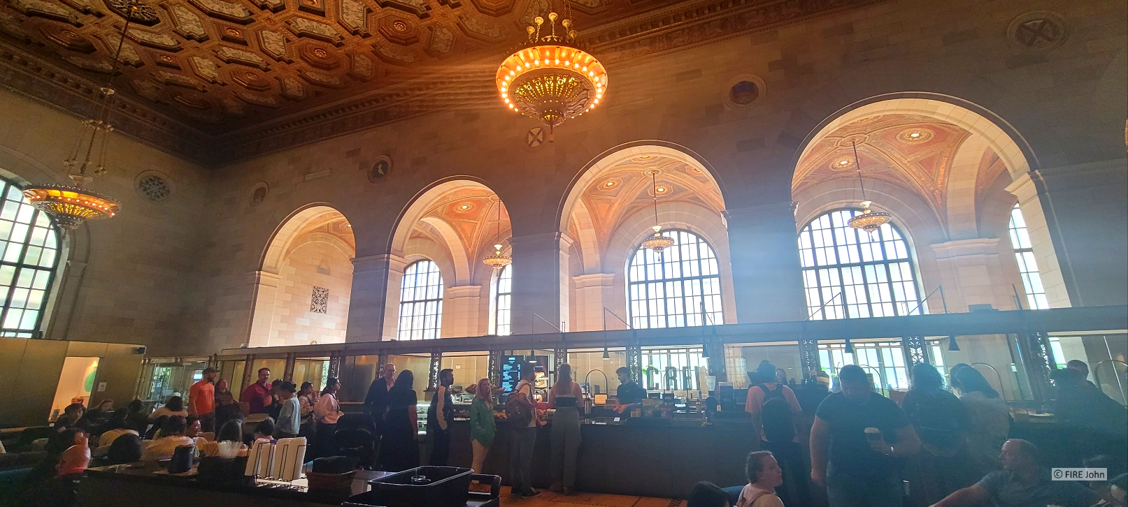 날씨가 쉽게 개지 않아 다시 노트르담 성당 쪽으로 내려와서 유명한 크루 카페(Crew Collective & Cafe, 360 Rue Saint-Jacques, Montréal, QC H2Y 1P5)로 향했습니다. 예전에 은행으로 사용하던 건물을 리모델링해서 카페와 코워킹 스페이스로 사용하는 것이라고 하는데 인테리어가 멋졌습니다. 사람이 정말 많고 자리에 앉아서 먹고 싶으면 다시 대기를 해야 해서 저는 가볍게 둘러보고 나왔습니다. 중앙에 카페가 있고 주변으로 미팅룸들이 있어서 그룹으로 회의/공부하는 사람들도 많았습니다.