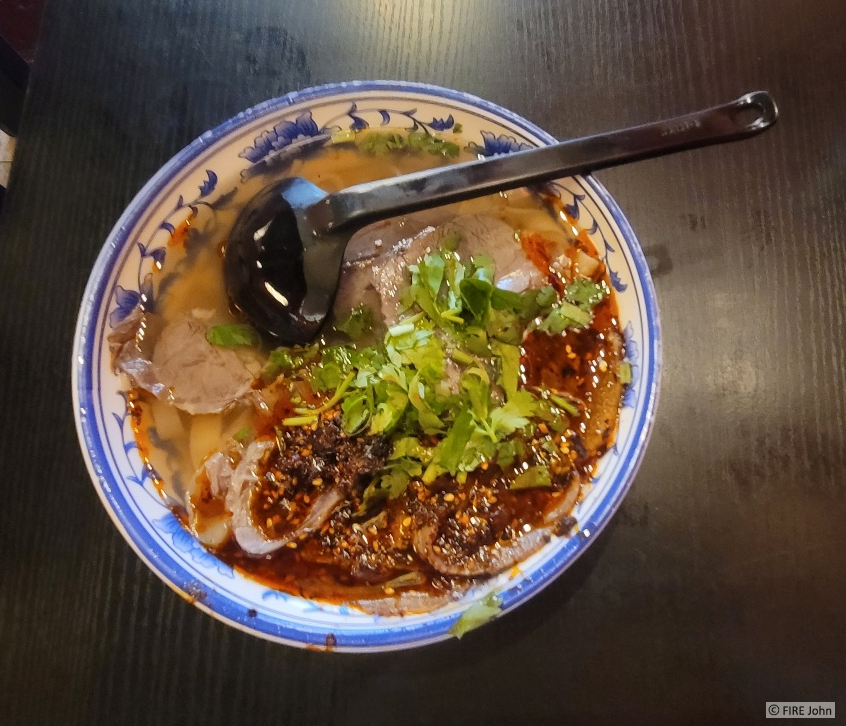 다시 날씨가 좋아지는 것 같아 나와 맥길 대학교(McGil University)를 보러 갔습니다. 점심시간을 놓쳐 주변을 찾아보니 평점이 높은 곳 중에 가장 먹고 땡기는 중국 도삭면 가게, 누야 정후야 (Nouilles Zhonghua, 908 Rue Sherbrooke O, Montréal, QC H3A 1G3)를 찾았습니다. 점심 때가 지난 시간이라 사람이 많지 않았는데, 제가 먹고 있는 중에 모든 테이블이 차더라고요. 저는 가장 기본인 비프 누들을 시켰고 맵기랑 면의 종류를 고를 수 있었습니다. 저는 중간 납작면(kuan) 그리고 맵기는 중간보다 덜 매운 맛(Mild)을 했습니다. 마라탕맛이 살짝 나는데 하나도 맵지 않아서, 조금 더 맵게 했어도 좋았을 것 같더라고요. 면도 바로 뽑아주셔서 쫄깃하고 맛있었습니다. 국수를 거의 다 먹어갈 때쯤 장대비가 쏟아져서 조금 더 앉아 있다가 나왔습니다. 총비용은 $17.18이고 캐나다 데빗이나 현금만 가능했습니다.
