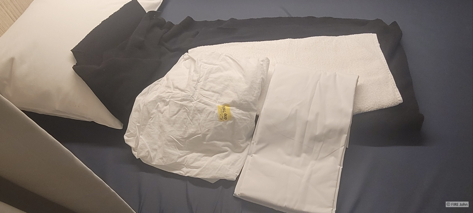 체크인하면서 헬스장 짐가방같은 것과 조그만 네임택 카드 같은 것을 줍니다. 침대는 지정되는 것이 아니라 비어있는 침대를 고르면 되어서 네임텍 카드를 침대에 꽂아두면 그 자리가 자신의 자리가 되는 것입니다.(사진 속 빨간색 카드) 짐가방에는 침구(까는 것 2장, 덮는 것 1장), 수건 1장이 있었습니다. 만약 새것을 받고 싶다면 자신의 것을 가져가서 교환해야 한다고 합니다. 침대 밑에 사물함이 있어서 캐리어가 있으면 넣어서 보관할 수 있습니다. 단 자물쇠를 제공되지 않으니 사용할 생각이면 개인 자물쇠를 가져와야 합니다.