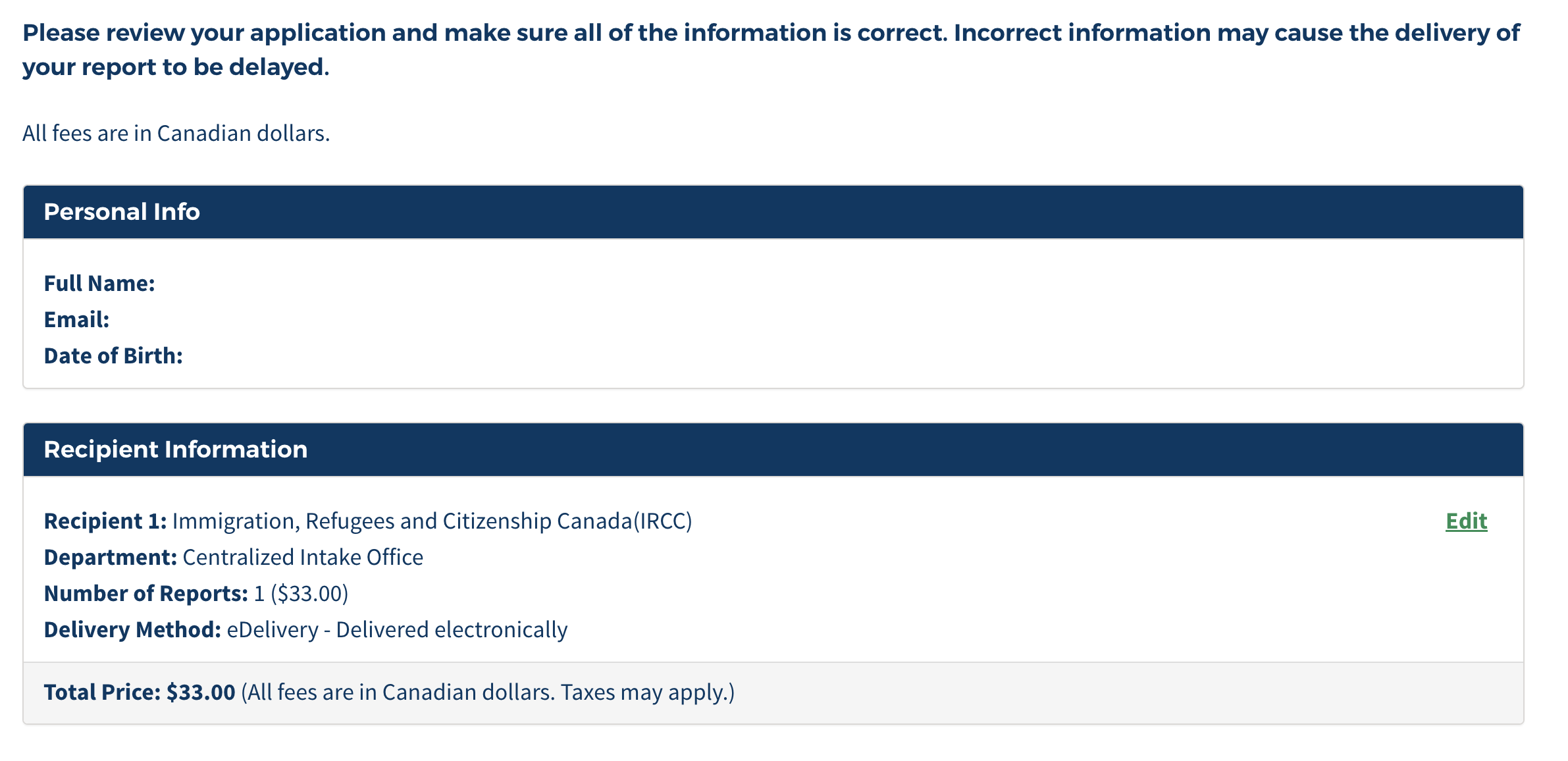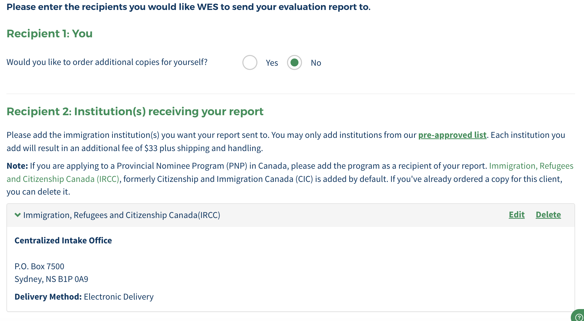 이민 목적으로 신청하면 기본적으로 수신자는 본인과 IRCC는 추가되어 나오고 필요한 경우 수신자를 넣을 수 있습니다. 서류를 받고 싶으면 첫 번째에 "Yes"를 그렇지 않으면 "No"를 하면 됩니다. 저는 서류 딱히 보고 싶은 생각도 없고, Yes를 하면 비용이 추가되기 때문에 No를 선택했습니다.
