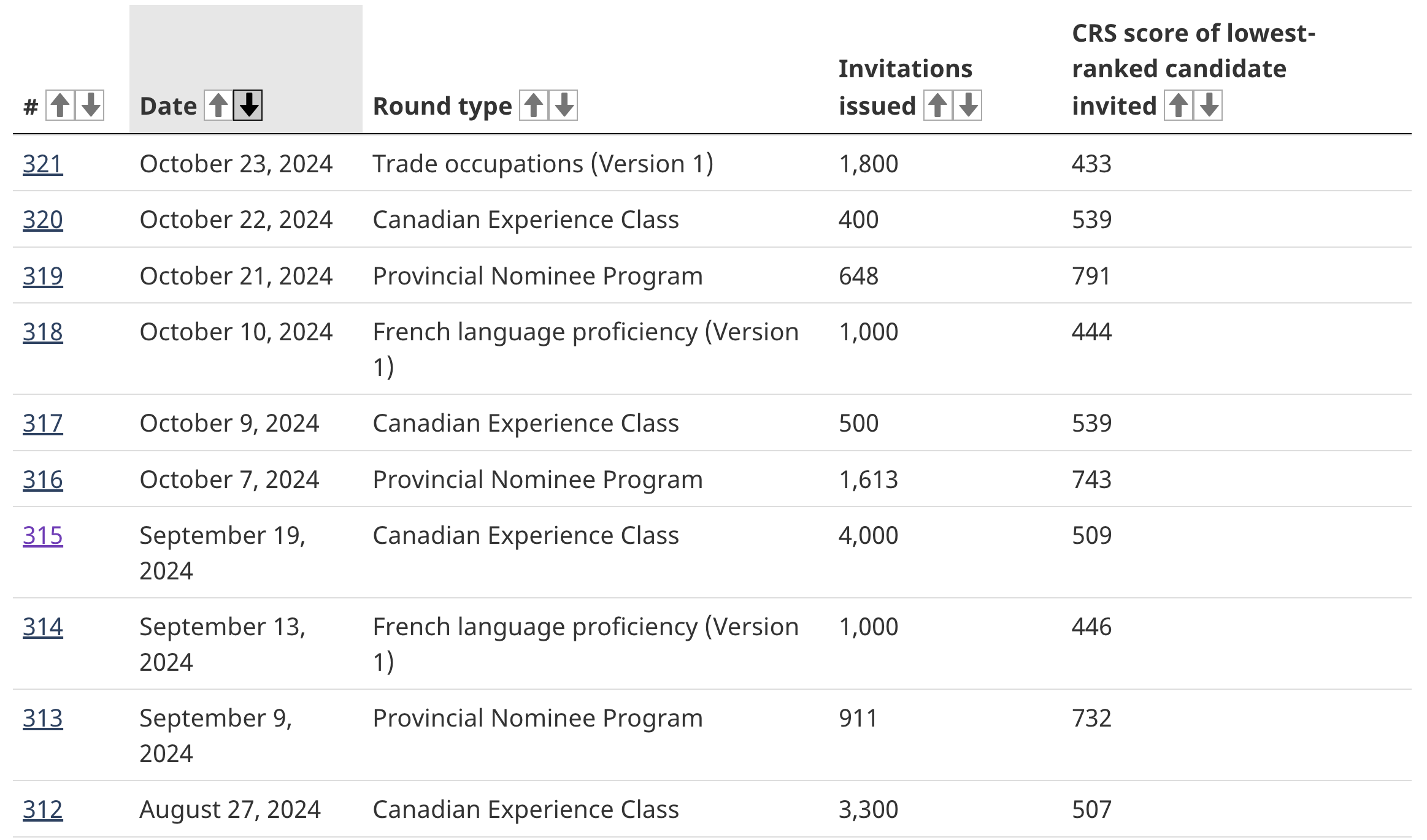 최근 영주권 점수 추이는 캐나다 경력 1년을 채우면 도전할 수 있는 CEC는 539점, 이외 트레이드나 불어 전형은 400점 초중반대로 형성되어 있습니다.