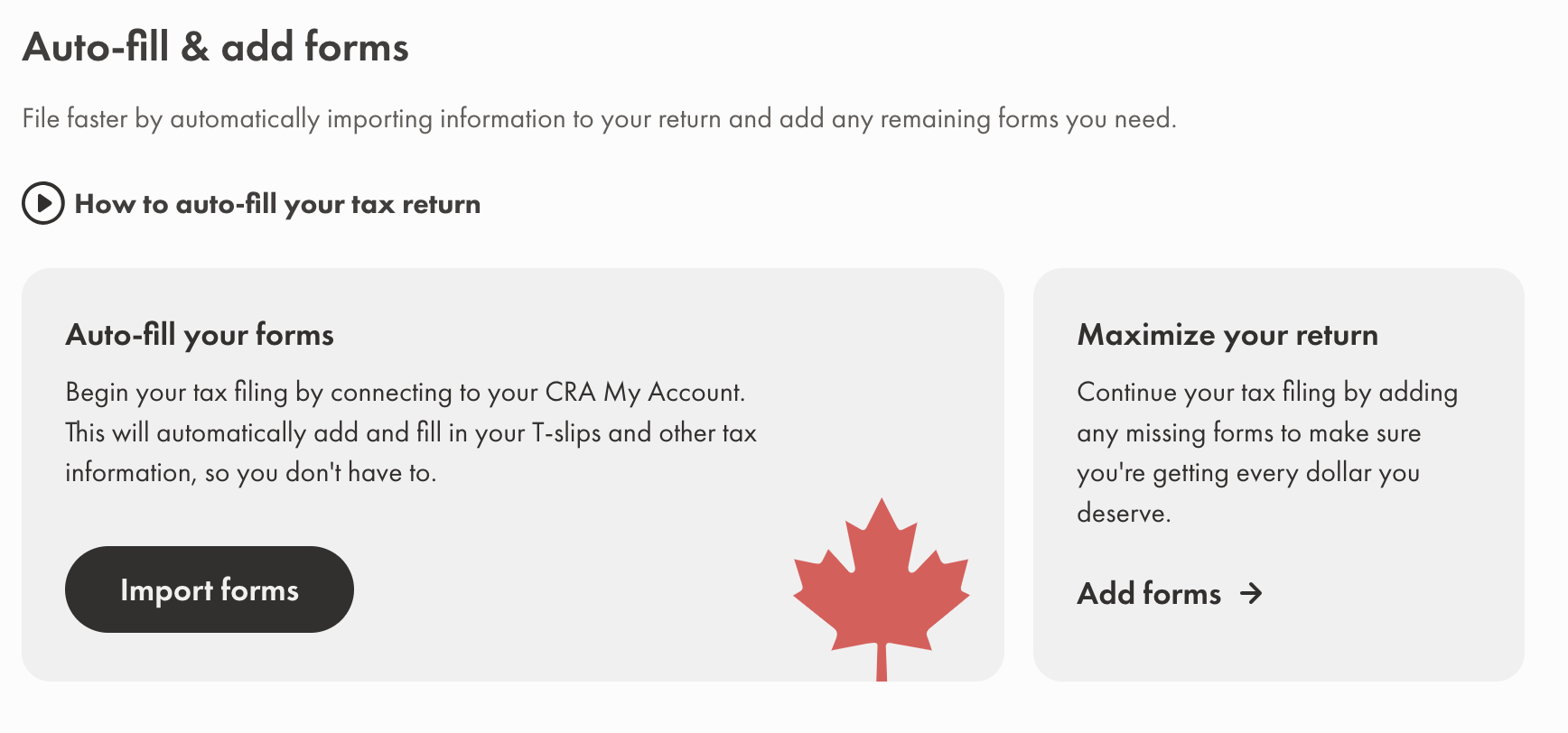 웰스 심플과 CRA 계정을 연동하면 CRA에 등록된 텍스 리턴내역을 불러올 수 있습니다. 저는 Import forms 기능을 활용해서 기본적인 내용은 불러오고 제가 추가적으로 입력해야 하는 부분을 채워넣었습니다.
