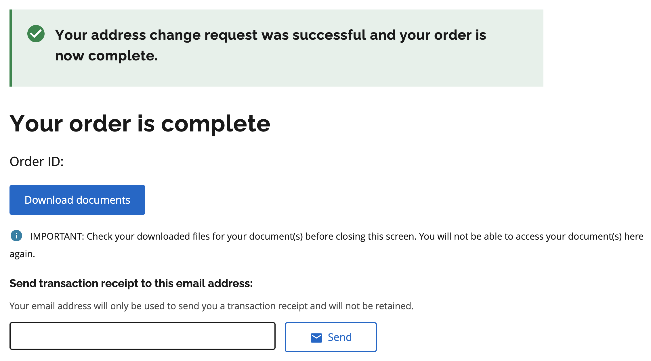 마지막으로 입력한 정보를 확인하고 제출하면 됩니다. 화면에는 주문이 완료되었다(Your order is complete)이 나오고 얼마 지나지 않아 접수 확인 메일이 도착합니다.