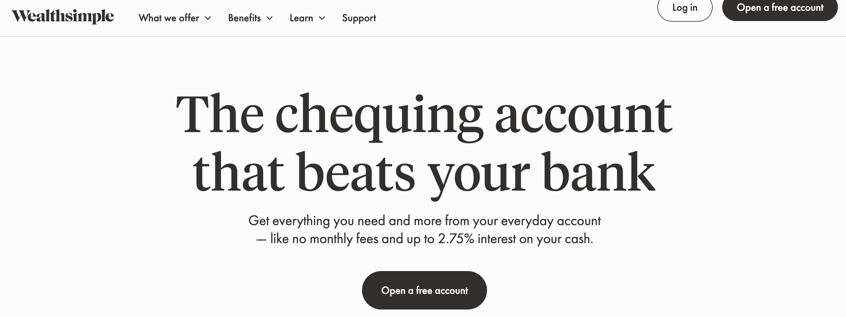 캐나다에서 투자를 알아보고 있던 중 아는 분의 소개를 받아 웰스심플(WealthSimple)을 알게되었습니다. 워낙 유명한 플래폼이라 투자에 관심있다면 한 번쯤 들어봤을 거라 생각합니다. CIBC 체킹 어카운트는 거의 이자가 없는 반면 웰스심플은 체킹 어카운트도 이자를 2.75% 까지 준다고 해서 투자도 하고 파킹 통장으로도 사용하기 위해 가입하였습니다.