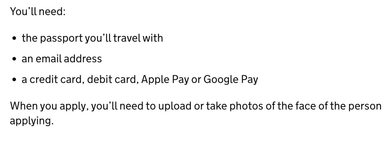 비자 신청하기 위한 준비물은 여권과 이메일 그리고 비자 지원 비용을 결제할 카드나 애플/구글 페이가 있어야 합니다. 그리고 지원 과정에서 지원자 본인 사진을 찍어야 할 수 있다고 합니다.
