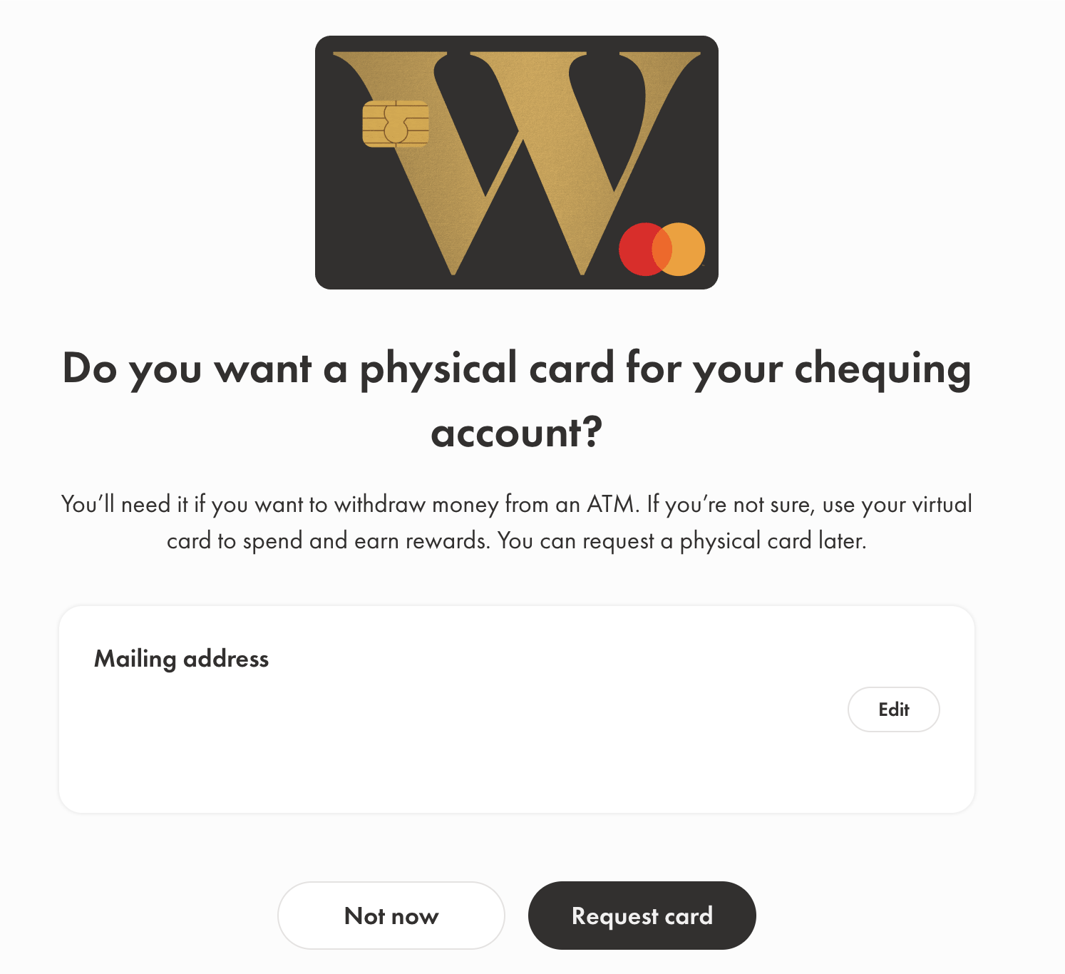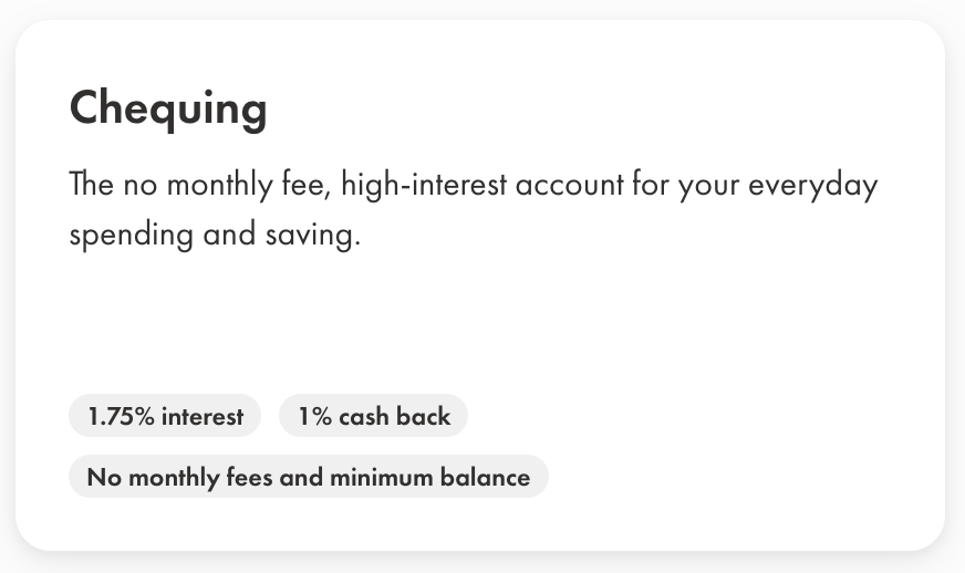 TFSA를 개설하고 나니 체킹 어카운트 만들기는 엄청 쉬웠습니다. 메뉴로 돌아가 Chequing을 선택합니다. 홍보 문구에서는