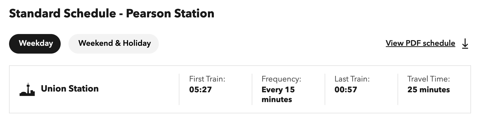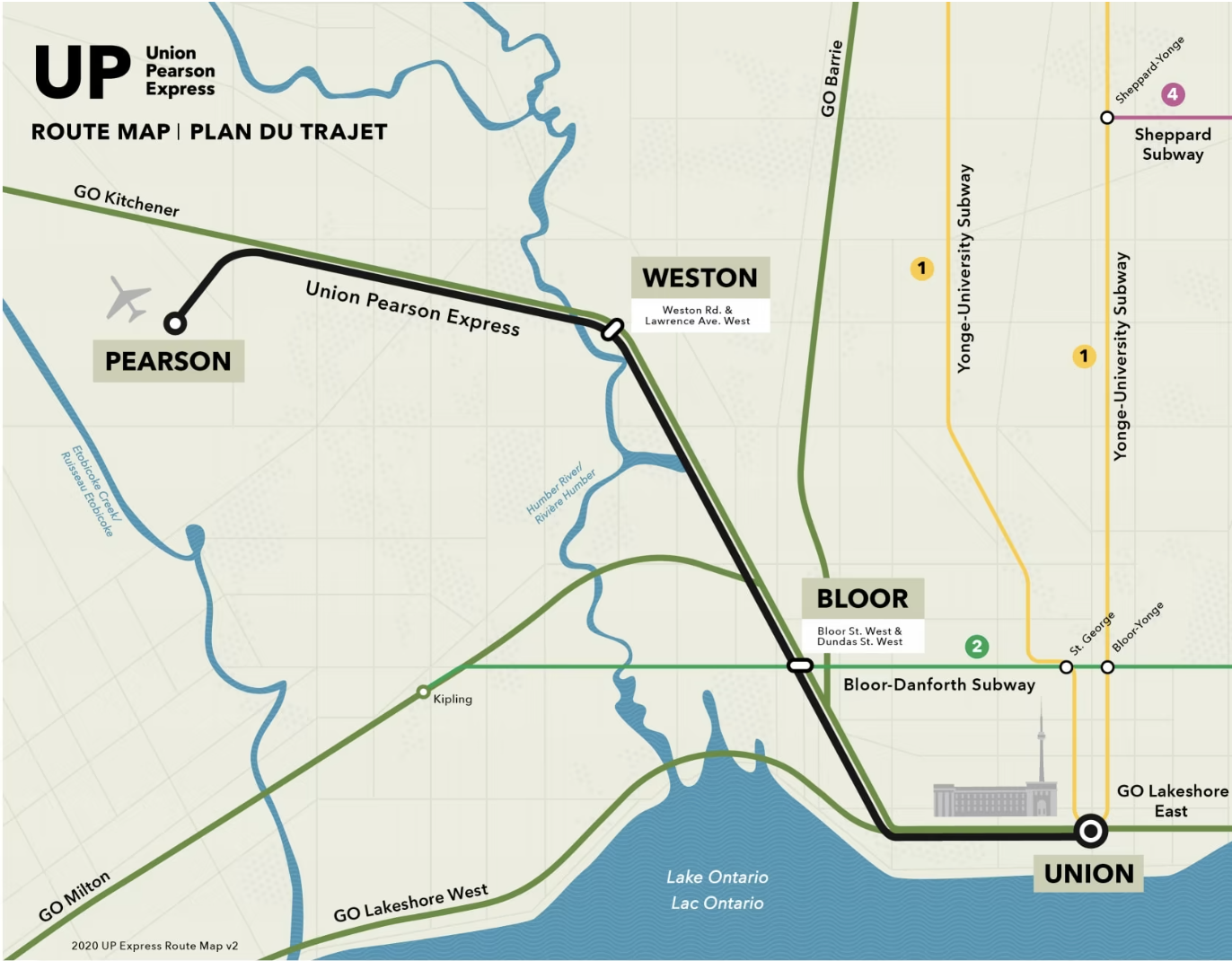 ▶ 정차역: 피어슨 공항 - 웨스턴 - 블로어 - 유니언