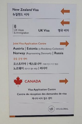 저번 #5 바이오메트릭 예약에서 예약한 날짜에 비자 센터를 방문하였습니다. 늦게 도착하면 해주지 않는다는 이야기를 본 것 같아서 서둘러갔습니다. 딱히 늦었다고 돌려보내는 분위기는 아니었습니다. 비자 센터에 도착해서 캐나다 비자 접수 센터인 오른쪽 사무실로 들어가면 됩니다. 제가 평일 오후 시간에 도착했을 때에는 약 6~7명 정도 대기하고 있었습니다.