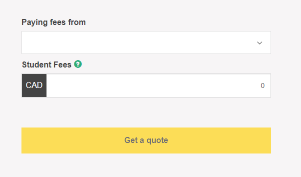 컬리지에서 보내준 웨스턴 유니온 링크에 접속하면 아래와 같은 칸이 나옵니다. Paying fees from에 "Korea, Republic of"를, Student Fees는 입학통지서에 적힌 금액만큼을 기재하고 "Get a quote"를 누릅니다.