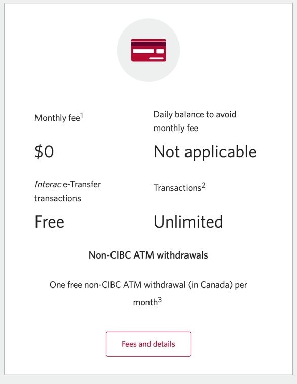 - CIBC가 아닌 ATM에서 인출: 1달에 1회 무료