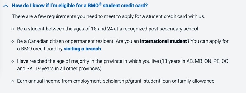 국제 학생은 메뉴쪽으로 들어가면서 일단 지점을 방문하라고 나와서 국제학생도 같은 조건이 적용되는 지는 모르겠습니다. 같은 기준이 적용된다면 캐나다에 온지 얼마되지 않은 풀타임 학생이라면 신용카드 만들기는 어려울 것 같네요.