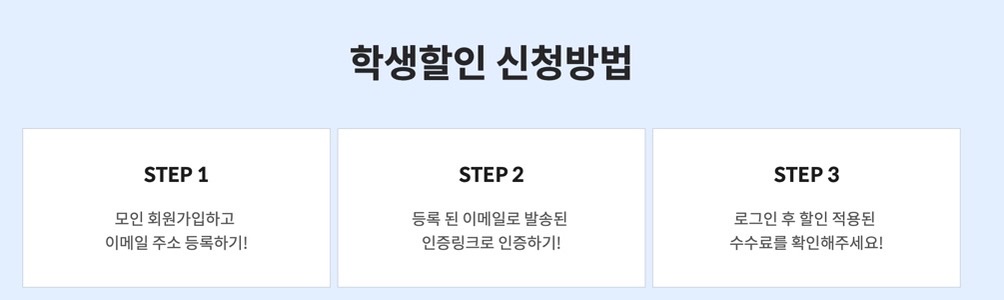 모인 사이트(https://www.themoin.com)에 접속해서 "학생 할인" 메뉴로 들어가면 수수료 헤택을 확인할 수 있습니다. 미국, 캐나다, 영국뿐만 아니라 유럽, 호주, 싱가포르, 홍콩도 수수료 0원 혜택을 볼 수 있습니다.