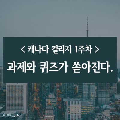 | 캐나다 컬리지 1학기 4주차: 수업 & 과제가 어려워진다.(feat. 조별과제) (2) | 2021.10.28 |